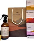 Ele conta com 3 sabonetes (Limão Siciliano, May Chang & Cúrcuma e Argila Vermelha & Patchouli),nossa Bruma Perfumada Calma de Gaia, e nosso Óleo Essencial de Lima da Floresta.