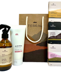 Ele conta com nossos 3 sabonetes Best-Sellers (Limão Siciliano, Carvão Ativado & Menta e Argila Branca & Lavanda), nossa Bruma Perfumada Calma de Gaia, e nosso Creme Corporal Alecrim.